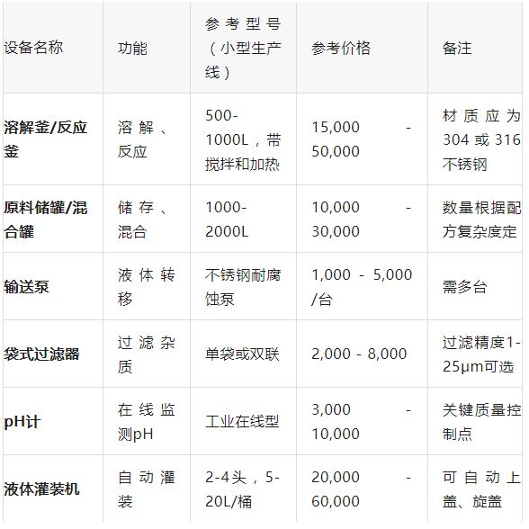 腐蚀性:微量元素盐类和酸性环境对设备腐蚀性强,强烈建议关键设备(如釜、罐、管道、泵)采用304或316不锈钢材质,以保证产品纯净和设备寿命。